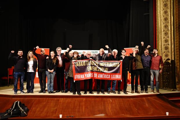 Sungur Savran ha posto un accento particolare sul Venezuela nel suo discorso. Ha fatto una parte del suo discorso in spagnolo e, indicando il manifesto appeso alla parete che recitava “¡Abajo el golpe imperialista en Venezuela! Fuera Yanquis de América Latina”. (“Abbasso il colpo di stato imperialista in Venezuela! Fuori gli yankee dall’America Latina”) ha detto: ” Hermanos y hermanas! Somos con ustedes en contra todo imperialismo, yanki o europeo! Que ustedes resistan! Los proletarios y los pobres de todo el mundo están con ustedes! Es el mismo combate en cada país por el pan y la libertad!” Tradotto in inglese significa: “Fratelli e sorelle! Contro ogni forma di imperialismo, sia americano che europeo, siamo sempre con voi! Resistete! I lavoratori e i poveri di tutti i paesi sono con voi. È la stessa lotta in tutti i paesi per il pane e la libertà”!
