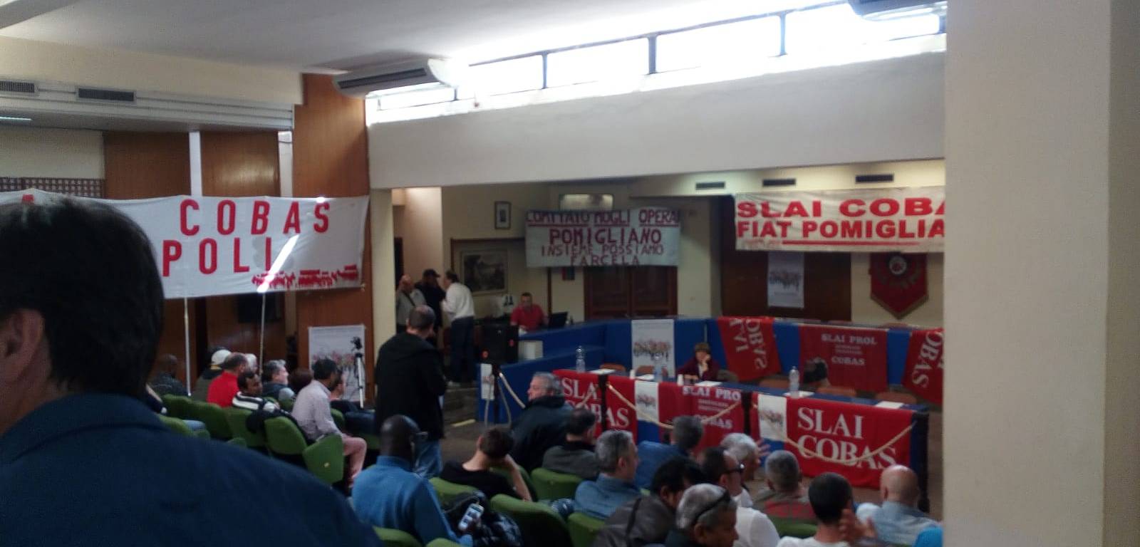 Nell’assemblea, che ha visto protagonisti oltre appunto ad operai della FCA (ex-FIAT) anche lavoratori immigrati della FINCANTIERI di Monfalcone, della STIGA di Castelfranco Veneto, di imprese del trasporto merci emiliane, si è ribadita la ferma opposizione a tutte le forme di smantellamento del diritto del lavoro, iniziato decenni fa con la precarizzazione diffusa del “pacchetto Treu” e i governi di centrosinistra (che hanno goduto quindi dell’avallo dei sindacati concertativi CGIL-CISL-UIL) Prodi-Bertinotti. Un disastro che è passato poi per la svendita totale della sinistra politica (Rifondazione Comunista e i cespugli nati nel suo grembo), del tanto acclamato movimento no global e dell’altrettanto osannato Landini, per finire con la sinistra populista di oggi, sia essa quella di De Magistris o quella di Cremaschi. Un arretramento passato per la sonora batosta degli accordi sindacali del 10 gennaio 2014 tra il padronato e le organizzazioni dei lavoratori asservite.