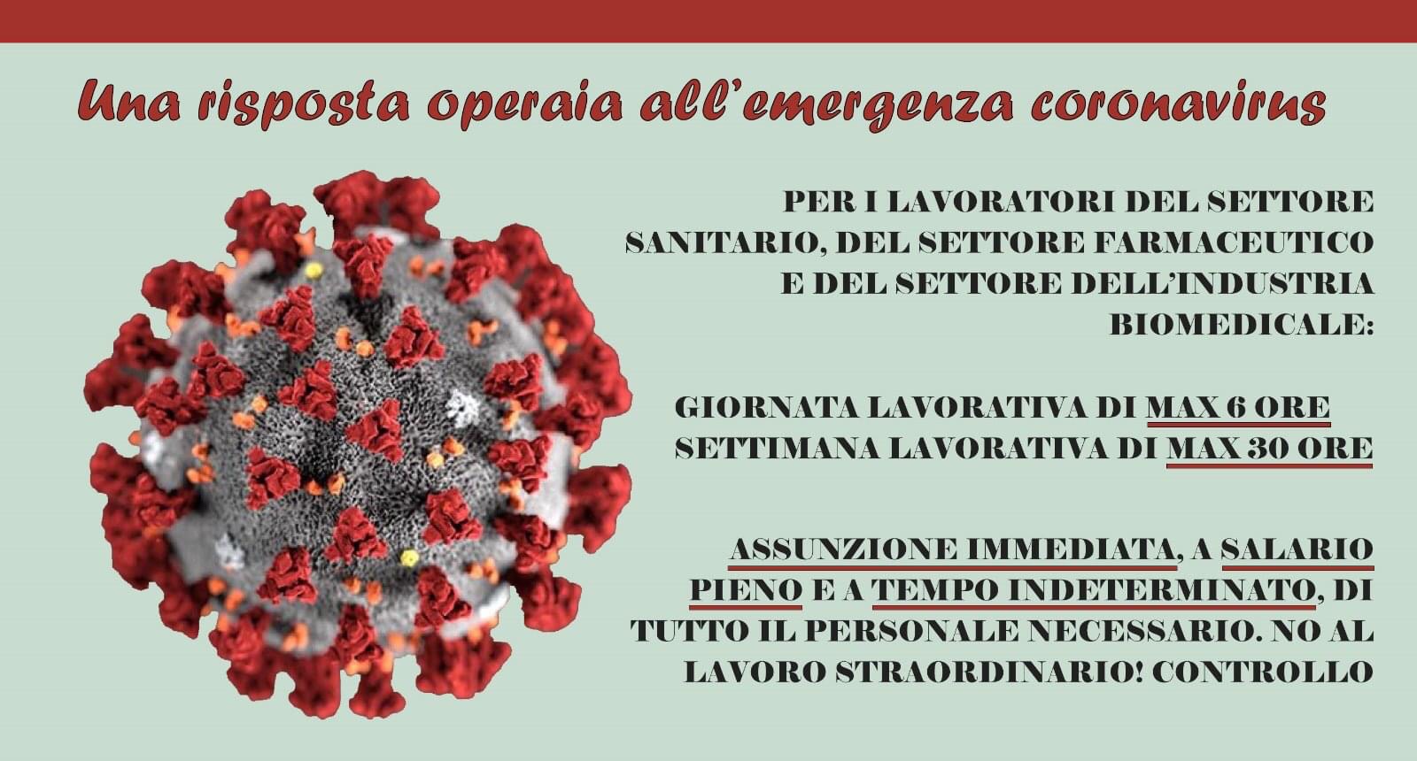 – l’#assunzione immediata, a salario pieno e a tempo indeterminato, di tutto il personale necessario. NO al lavoro #straordinario! controllo operaio sulle condizioni di lavoro del personale di questi settori