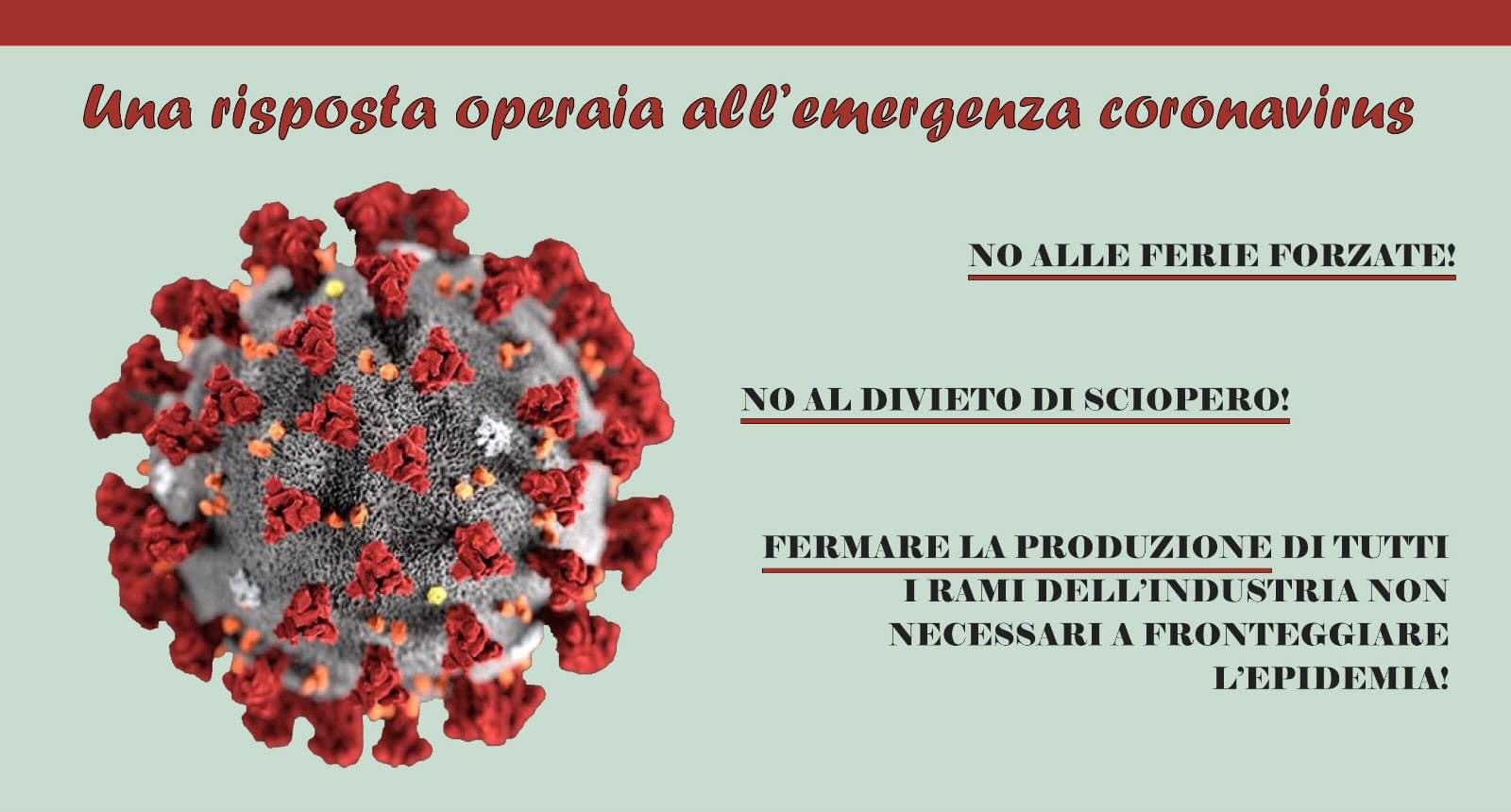 – NO alle #ferieforzate! NO al divieto di sciopero! Fermare la produzione di tutti i rami dell’industria non necessari a fronteggiare l’epidemia!