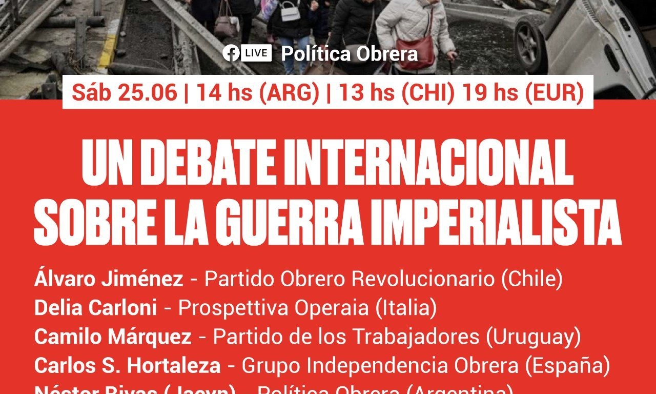 Pubblichiamo di seguito l’intervento della nostra compagna Delia all’iniziativa di discussione UN DEBATE INTERNACIONAL SOBRE LA GUERRA IMPERIALISTA, che si è tenuta lo scorso 25 giugno, organizzata insieme a Política Obrera (Argentina), Partido Obrero Revolucinario (Chile), Grupo Independencia Obrera (España), Partido de los Trabajadores (Uruguay).