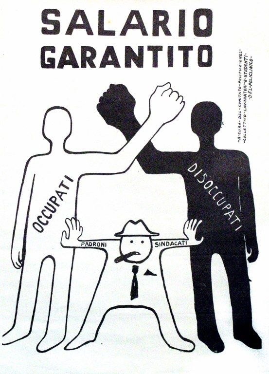 Le rivendicazioni di salario e lavoro non sono in contrasto con quella del reddito ai disoccupati, come sostengono talune organizzazioni “di classe” eclettiche e massimaliste ma, soprattutto, totalmente avulse dai bisogni elementari delle masse, in particolare nel Mezzogiorno d’Italia. Ma non sono neanche rivendicazioni separabili per cui una certa sinistra di movimento punta tutto su reddito di base, reddito universale, reddito di cittadinanza (definizione che infatti non nasce con la proposta filopadronale del Movimento 5 Stelle ma con quella di un pezzo di sinistra autonoma e antagonista), e via discorrendo, scivolando nel più insulso e aclassista anti-lavorismo. Rivendicare la piena occupazione resta l’asse centrale della politica dei comunisti in tema di lavoro e vanno contemporaneamente rivendicati tutti gli strumenti per ottenerla, come la riduzione dell’orario di lavoro a parità di salario, ma va rivendicato anche il salario di disoccupazione per tutti quei proletari e quelle proletarie che nel frattempo questo malato mercato del lavoro non riesce ad assorbire.